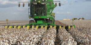 A John Deere cotton harvester at work in a cotton field (Credit: Kimberly Vardeman via Wikimedia Commons) LUBBOCK, TX – Texas A&M AgriLife Extension cotton marketing economist Dr. John Robinson …